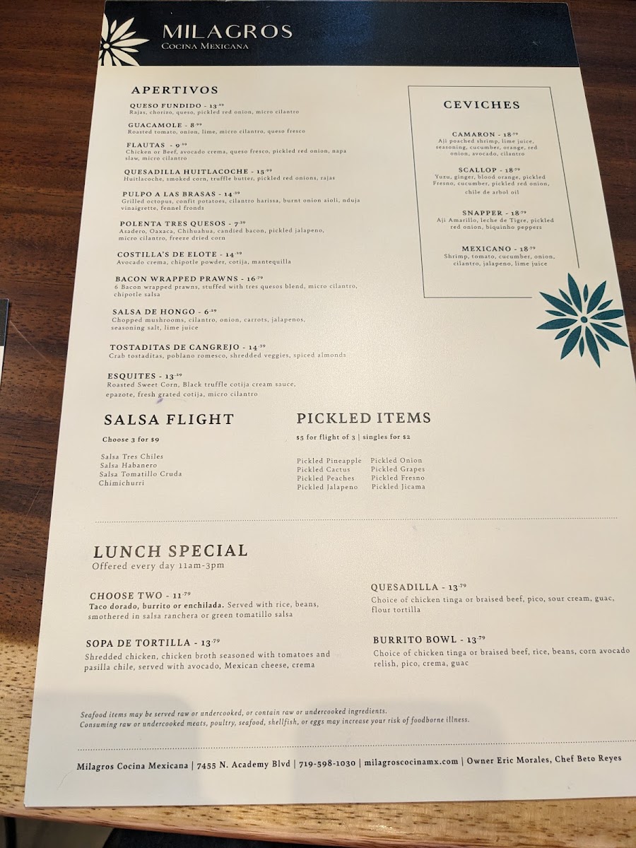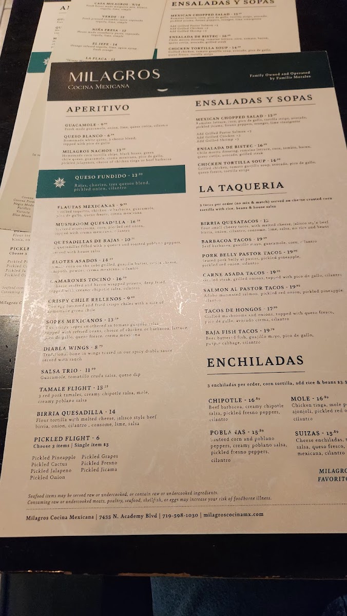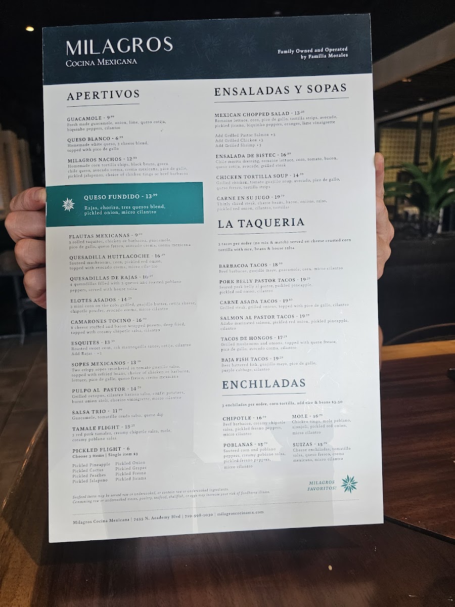 If you’re craving authentic Mexican flavors, look no further than Milagro's Cocina Mexicana Menu. Located at 7455 N Academy Blvd in Colorado Springs, this spot offers a vibrant selection of dishes inspired by traditional recipes. Whether you're in the mood for sizzling fajitas, a hearty taco platter, or a flavorful enchilada, there’s something here for everyone. The menu also features a range of tasty appetizers, like freshly made guacamole and crispy tortilla chips, to start your meal off right.